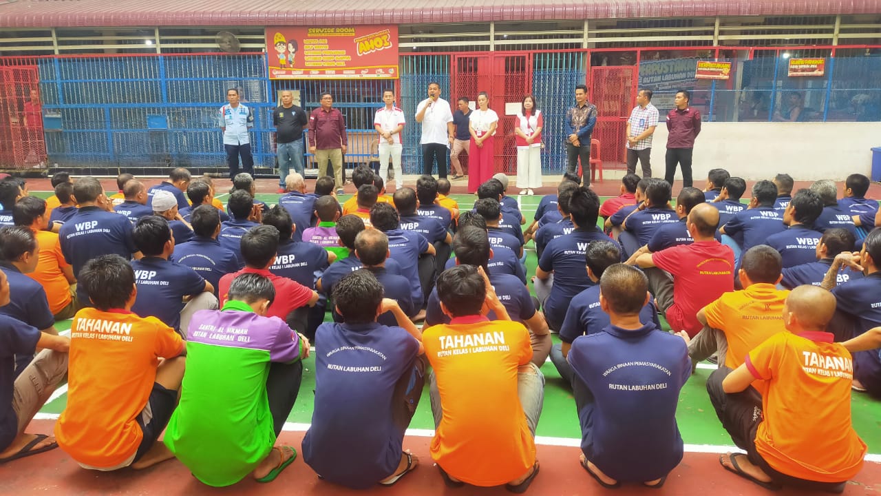 Labuhan Deli | 1kabar.com Dalam menyambut HUT Republik Indonesia Ke – 78 Tahun 2023, Rumah Tahanan Negara (Rutan) Kelas I Labuhan Deli Kanwil Kemenkumham Sumut bekerja sama dengan Yayasan Maha Karuna gelar Bakti Sosial Kesehatan Gratis Kepada Warga Binaan Pemasyarakatan, bertempat di Rutan Kelas I Labuhan Deli Kanwil Kemenkumham Sumut, Minggu (06/08/2023).